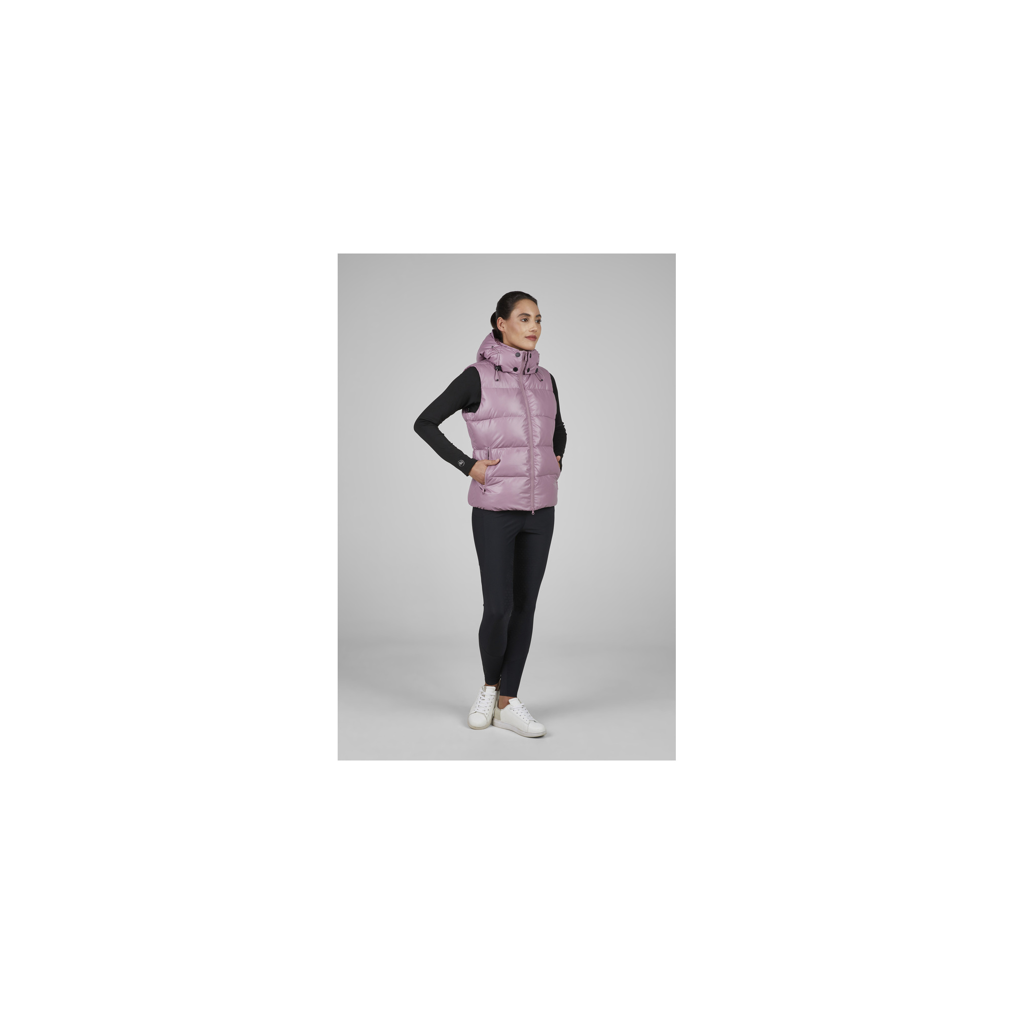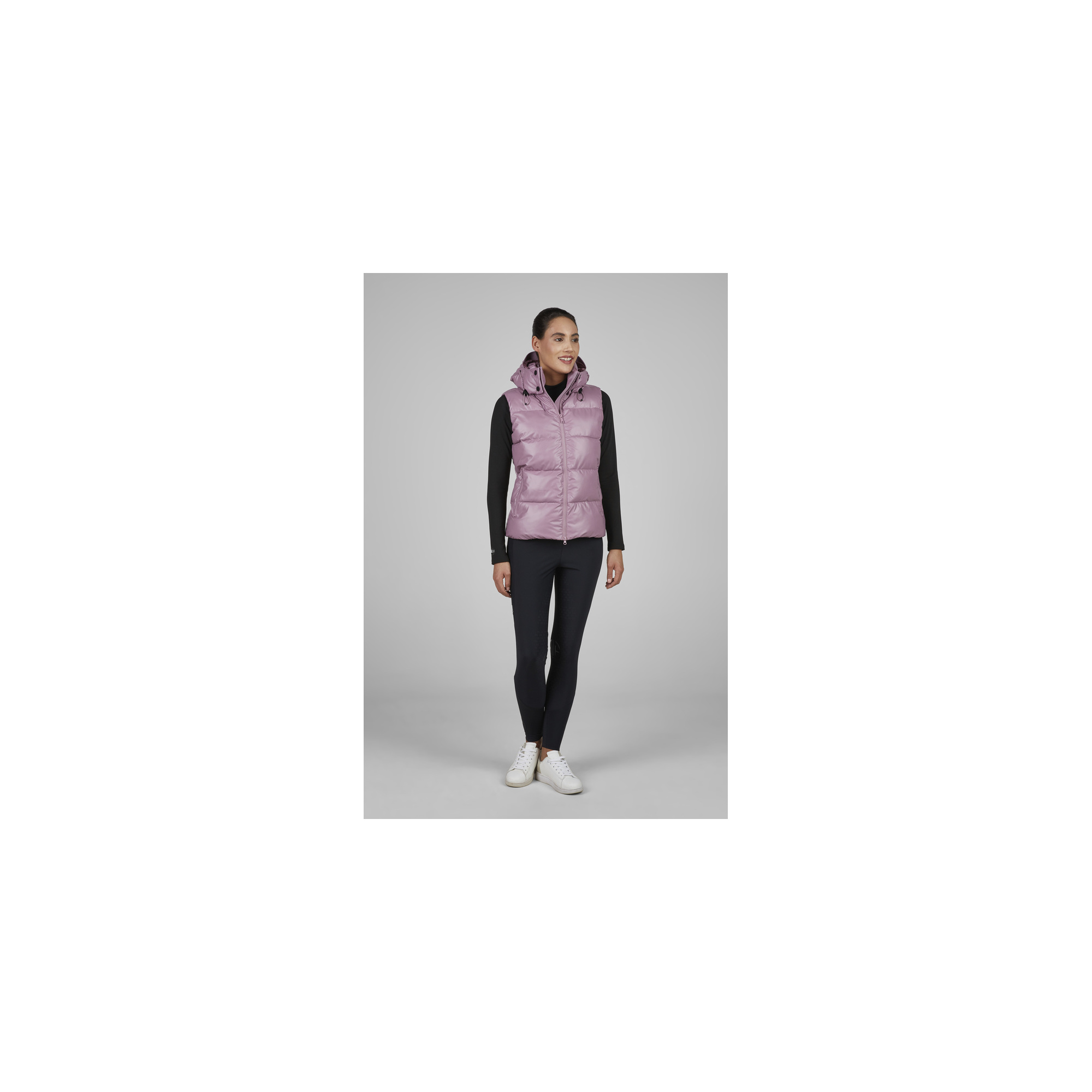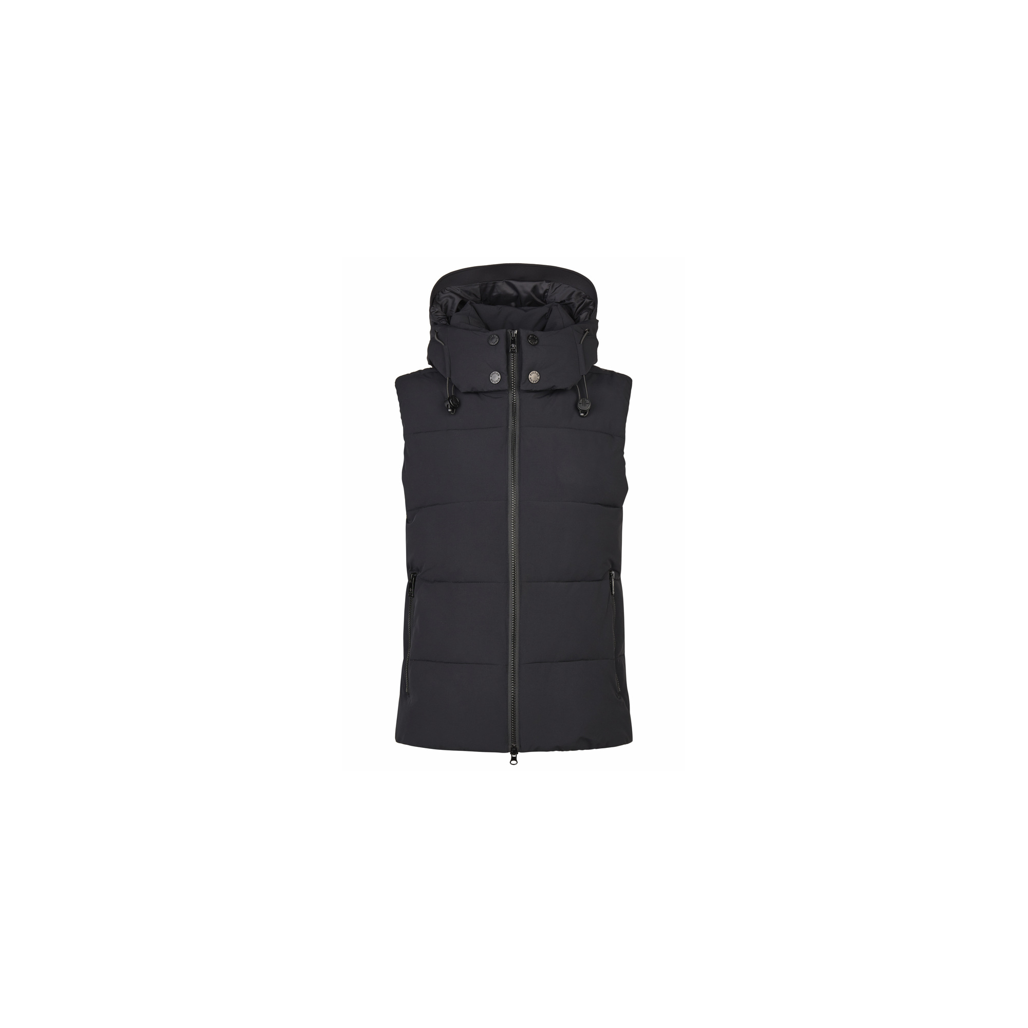 Nowoczesna kamizelka Pikeur to połączenie funkcjonalności, komfortu i stylowego designu. Uszyta z bi-elastycznej tkaniny o matowym wykończeniu i subtelnej strukturze ripstop, zapewnia pełną swobodę ruchów i wytrzymałość na codzienne użytkowanie. Wypełnienie z recyklingu Ethermaloft Fibre Ball gwarantuje wyjątkową miękkość i doskonałe właściwości termoizolacyjne. Dodatkowo tylna część została wyposażona w innowacyjną podszewkę Graphene, która magazynuje i równomiernie rozprowadza ciepło, zapewniając maksymalny komfort. Odpinany kaptur z daszkiem i regulacją daje możliwość dopasowania do warunków pogodowych, a jerseyowy windstopper w rękawach chroni przed chłodem. Duże, haftowane logo Pikeur 3D na plecach podkreśla ekskluzywny charakter modelu. To kamizelka, która doskonale sprawdzi się w stajni i w codziennych, sportowych stylizacjach.