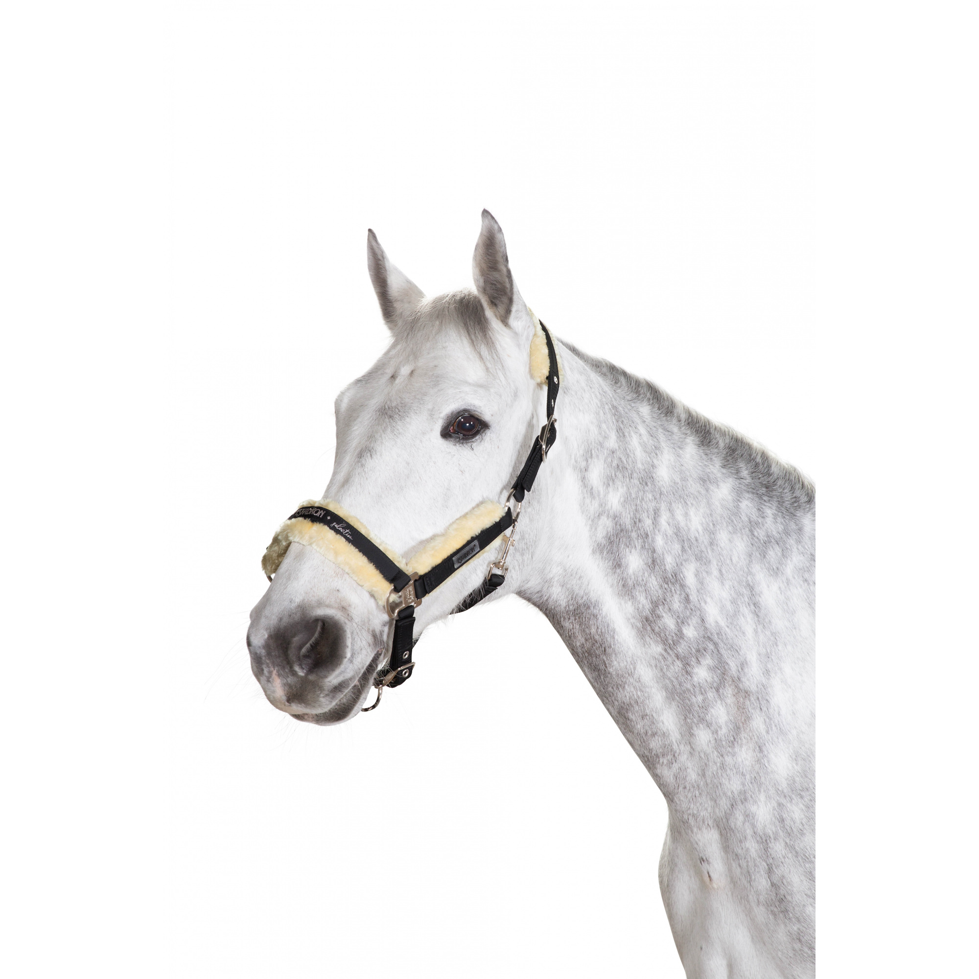 Kantar wykonany został z wytrzymałej oraz wysokiej jakości błyszczącej tkaniny. Na nachrapniku znajduje się ozdobny silikonowy napis brokatowy Eskadron. W części nosowej, policzkowej oraz potylicznej podszyty został przyjemnym w dotyku futrem jagnięcym odpinanym na rzep. Jest regulowany za pomocą sprzączek na wysokości nosowej oraz potylicznej.