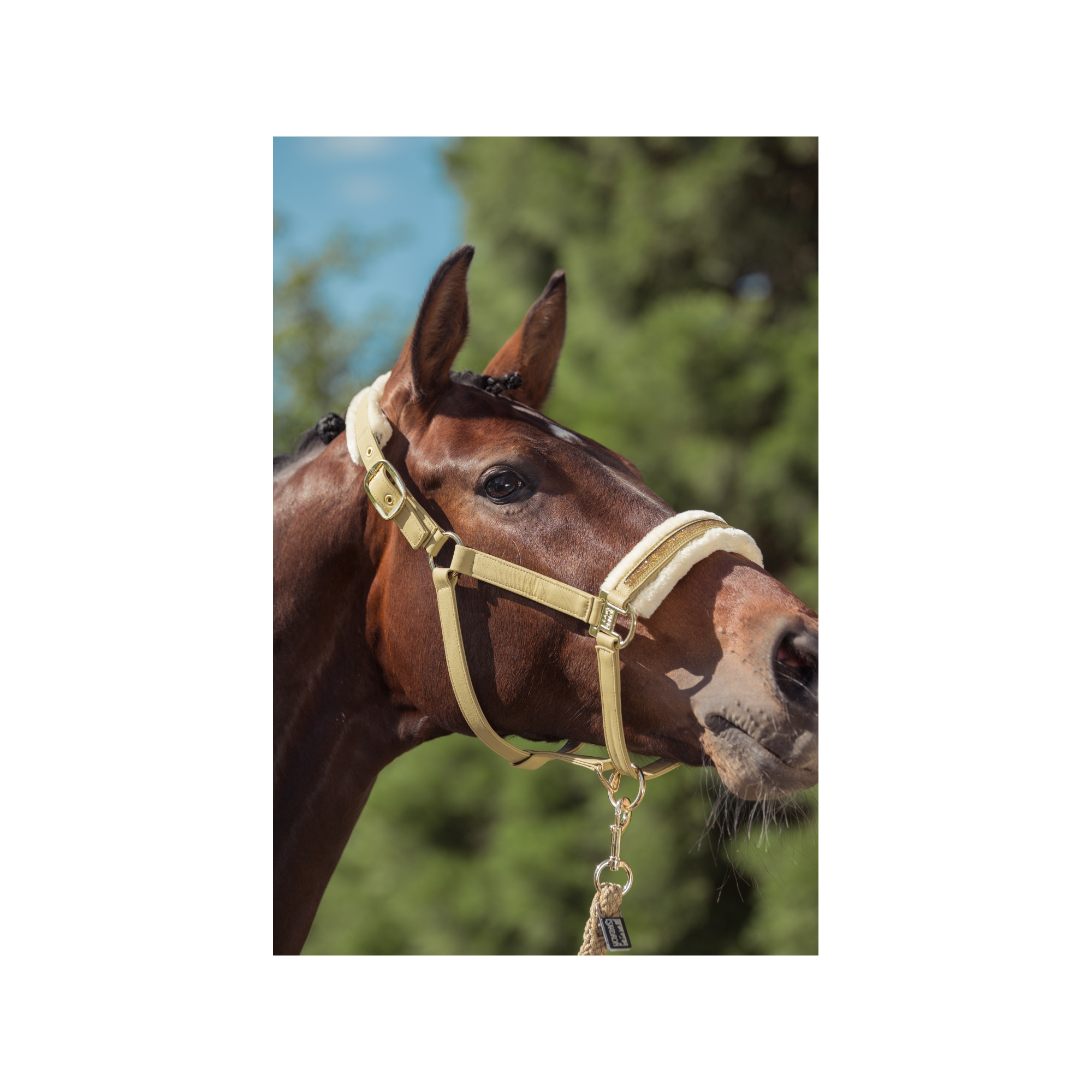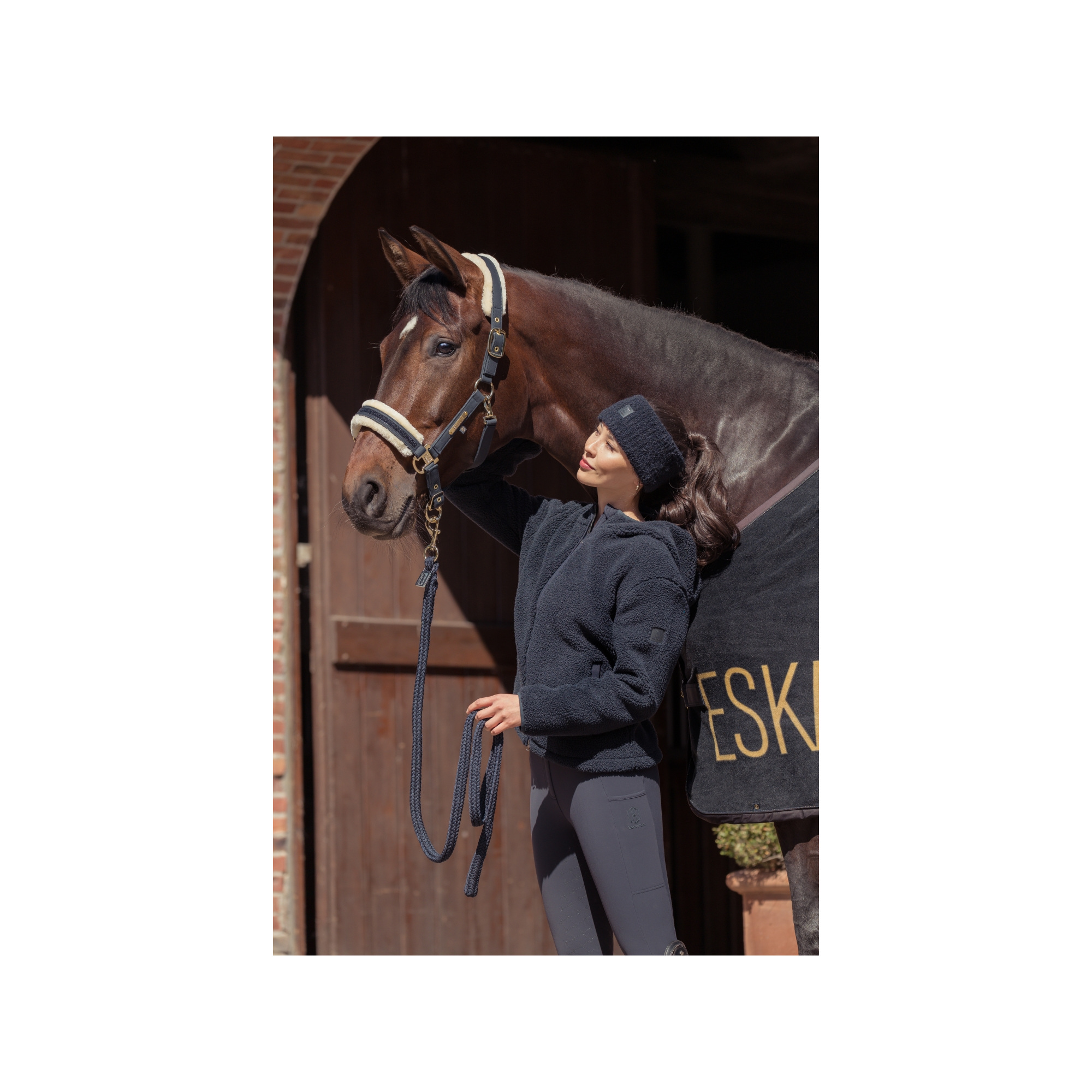 Eskadron Faux Leather Jewel FF Heritage to niezwykle stylowy kantar, łączący elegancję skóry syntetycznej z luksusowym wykończeniem. Wykonany z trwałego materiału Faux Leather, który jest odporny na zabrudzenia i łatwy w pielęgnacji. Wewnętrzne podszycie z miękkiego futerka Faux Fur gwarantuje komfort i ochronę przed otarciami. Na pasku policzkowym znajduje się delikatne logo Heritage w formie błyszczących kryształków, dodające całości wyjątkowego uroku. Regulacja w dwóch punktach pozwala na idealne dopasowanie, a solidne okucia zapewniają bezpieczeństwo i trwałość. To połączenie elegancji, funkcjonalności i wygody, które podkreśla wyjątkowy charakter Twojego konia.