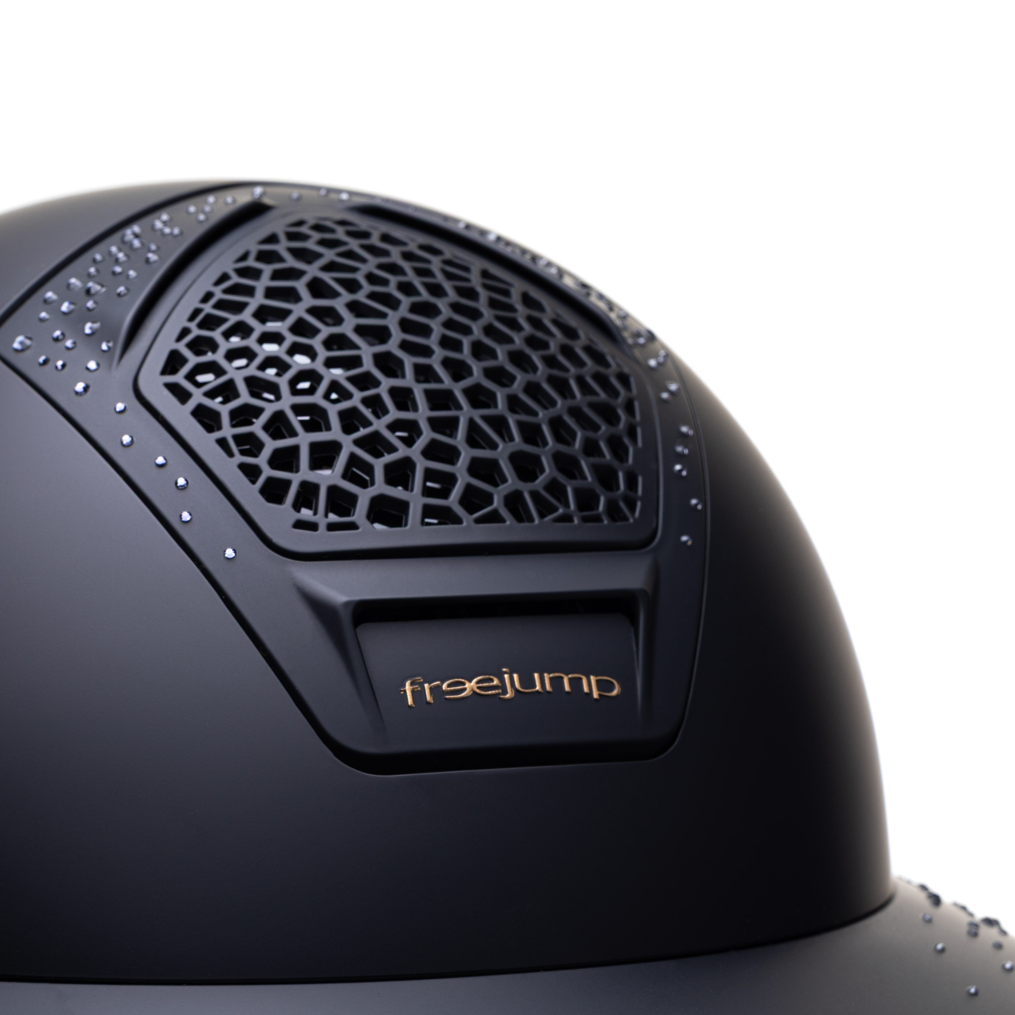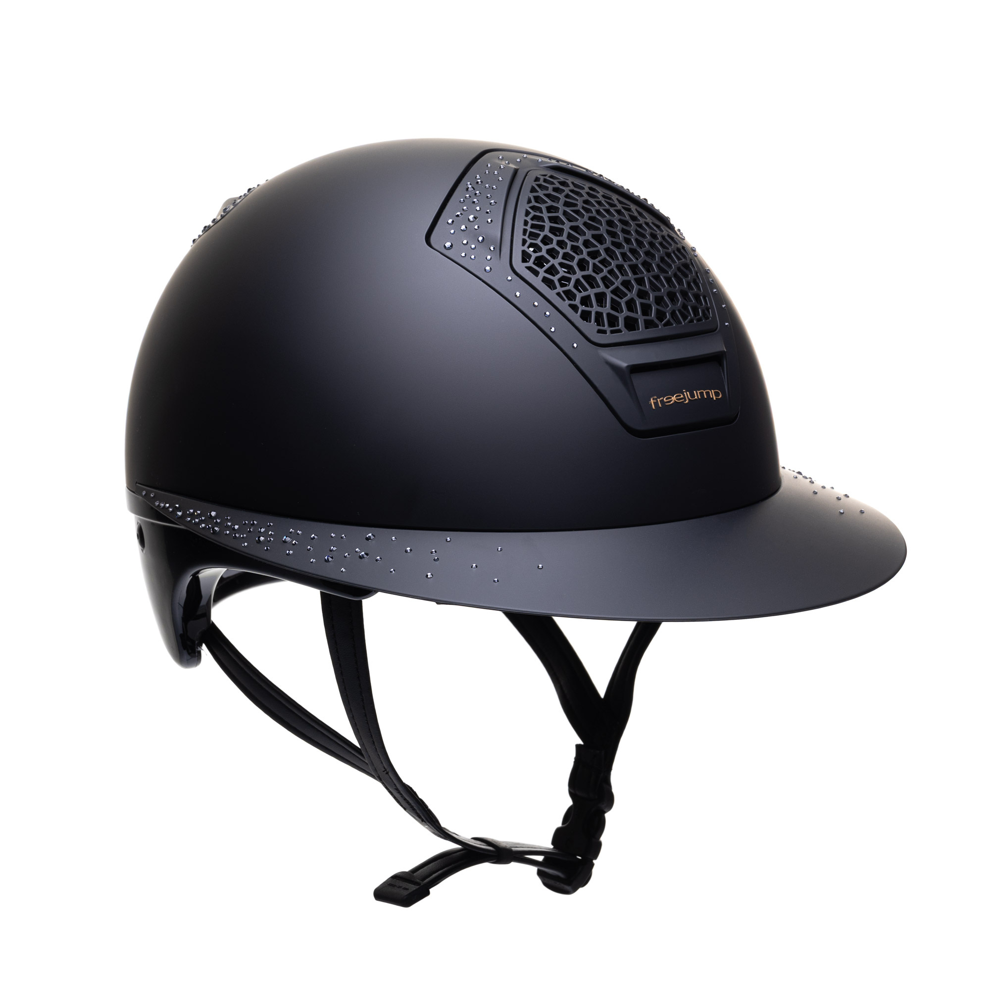Freejump Voronoï Matte z szerokim daszkiem Full Crystals to kask jeździecki, który łączy elegancki, matowy wygląd z luksusowym blaskiem kryształków. To propozycja dla jeźdźców, którzy cenią sobie wyrafinowany styl, perfekcyjne wykonanie i najwyższy poziom bezpieczeństwa. Każdy detal został tu dopracowany z niezwykłą precyzją – od struktury skorupy po rozmieszczenie kryształków, które subtelnie mienią się w świetle, tworząc efekt pełen klasy i prestiżu.