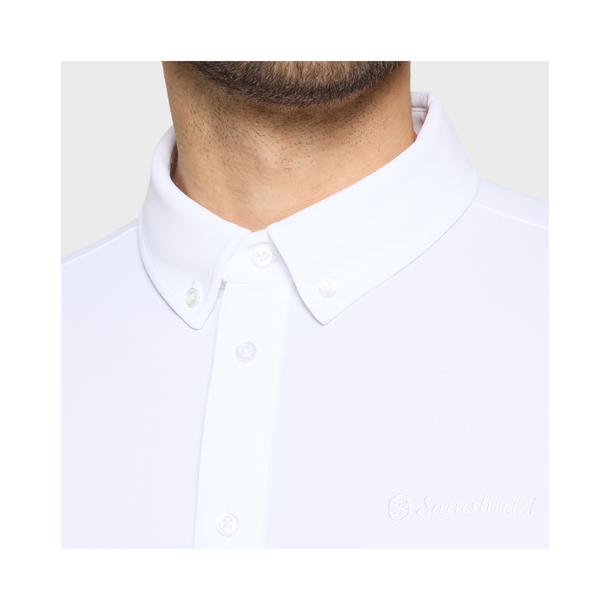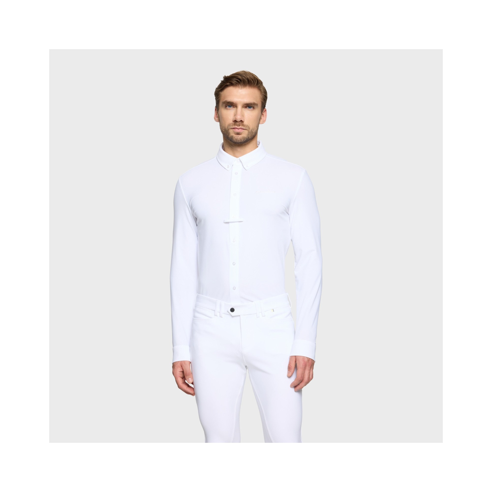 Elegancka koszula konkursowa męska z długim rękawem została zaprojektowana z myślą o jeźdźcach ceniących klasyczny, stonowany wygląd oraz najwyższy komfort podczas startów. Wykonana z oddychającego, elastycznego materiału, zapewnia pełną swobodę ruchów i idealnie dopasowuje się do sylwetki w trakcie jazdy. To model stworzony w duchu odpowiedzialnej produkcji – trwały, wytrzymały i zaprojektowany tak, aby służył przez wiele sezonów. Koszula jest łatwa w pielęgnacji, nie gniecie się i może być prana w pralce, co czyni ją wyjątkowo praktycznym wyborem dla aktywnych jeźdźców.