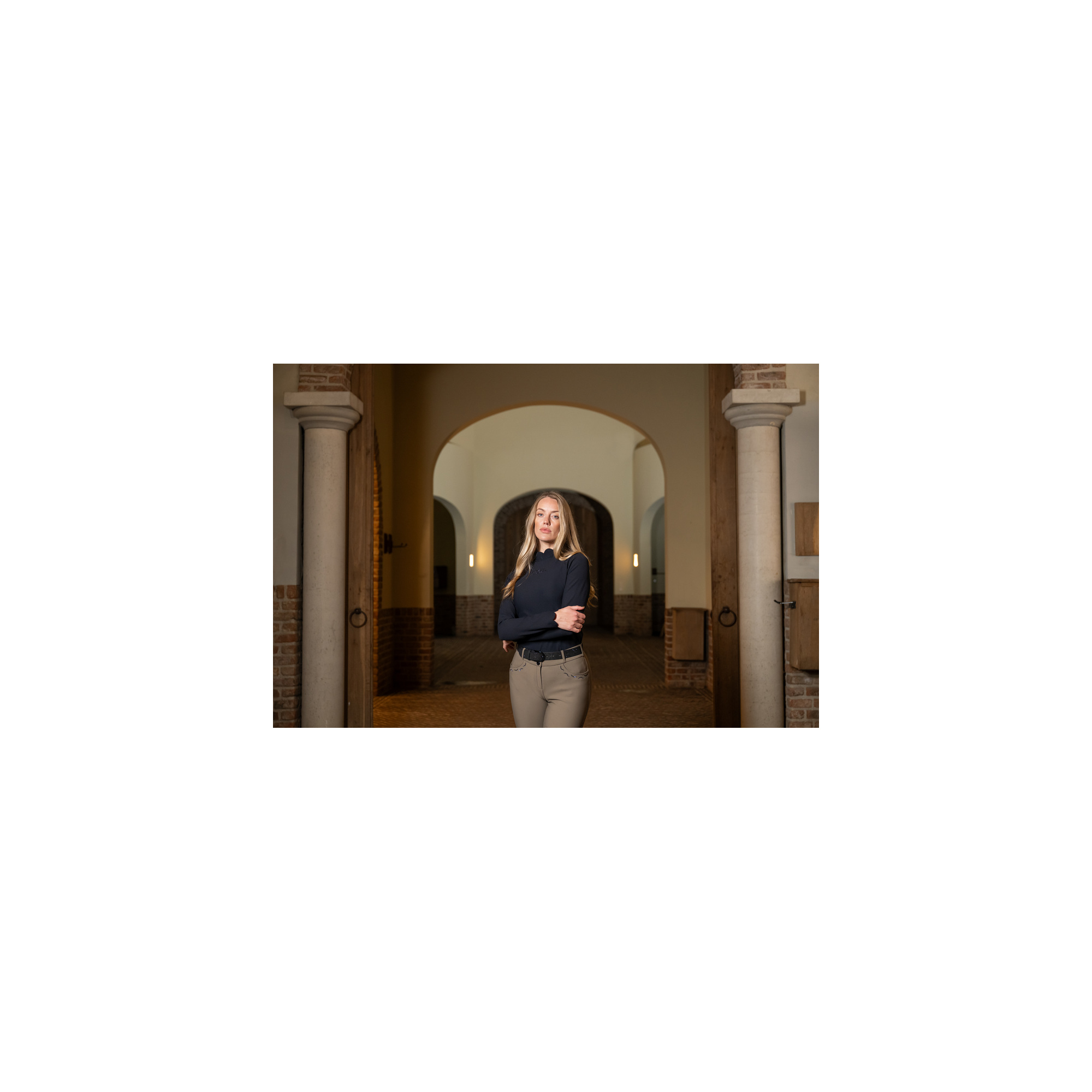 Koszulka sprawdzi się zarówno podczas jazdy konnej, jak i jako element codziennej garderoby – dzięki swojej uniwersalnej formie z łatwością wpasuje się w różne stylizacje. Subtelny akcent stanowi logo Pikeur Selection ozdobione błyszczącymi kryształkami, które dodają całości luksusowego wyrazu. To detal, który przyciąga wzrok i wyróżnia koszulkę spośród klasycznych modeli.