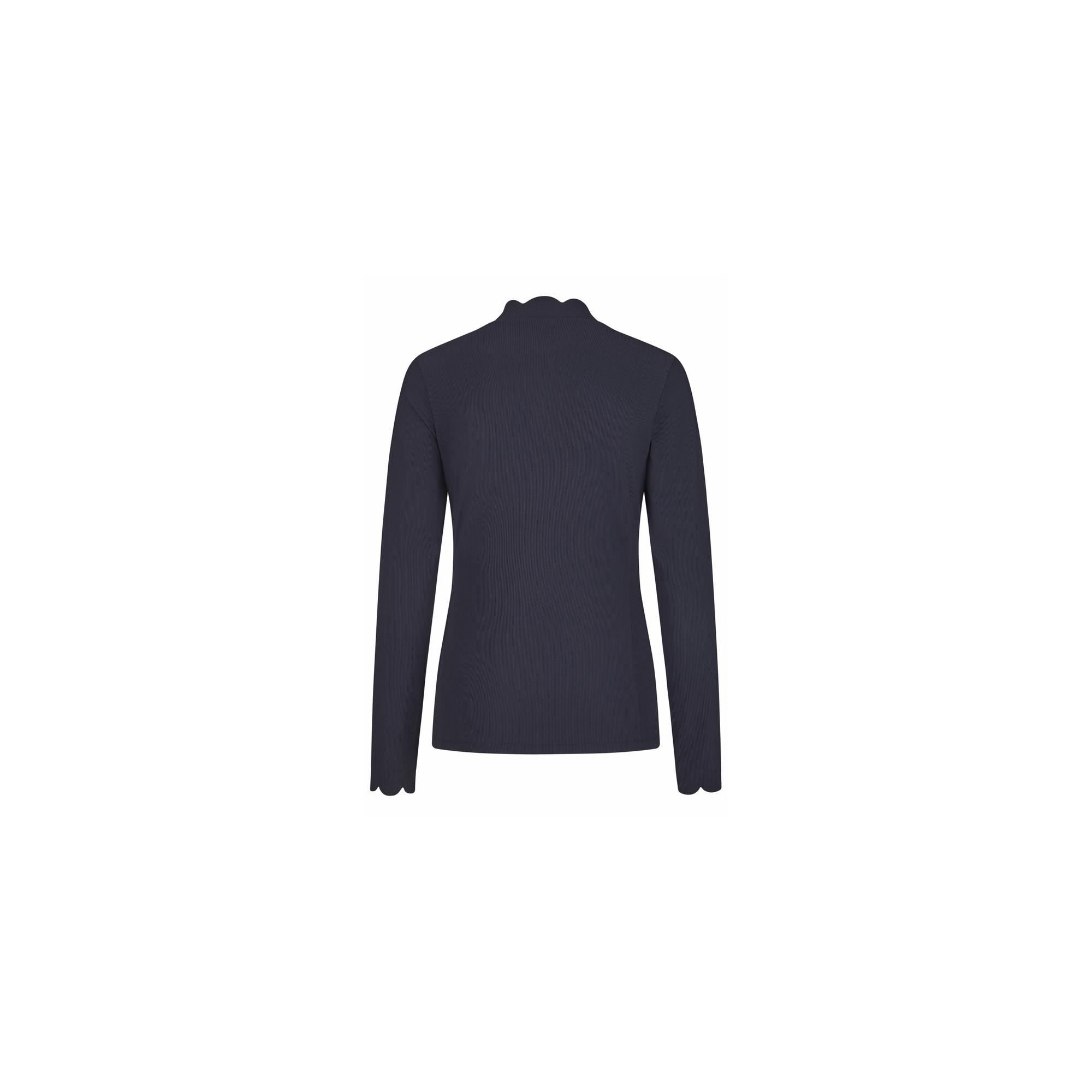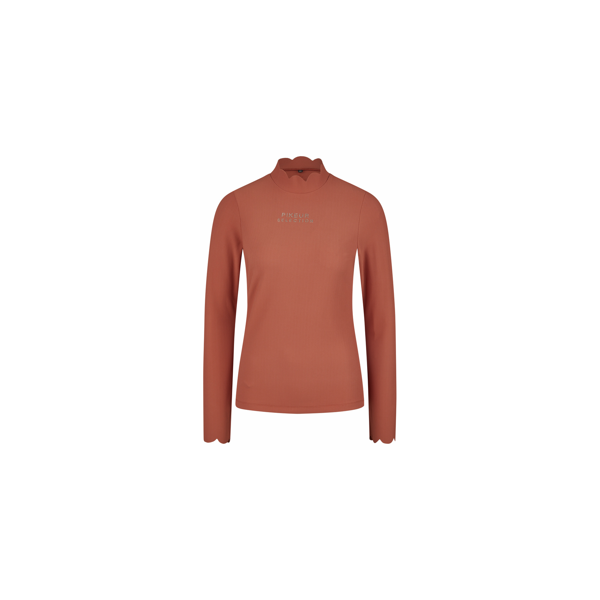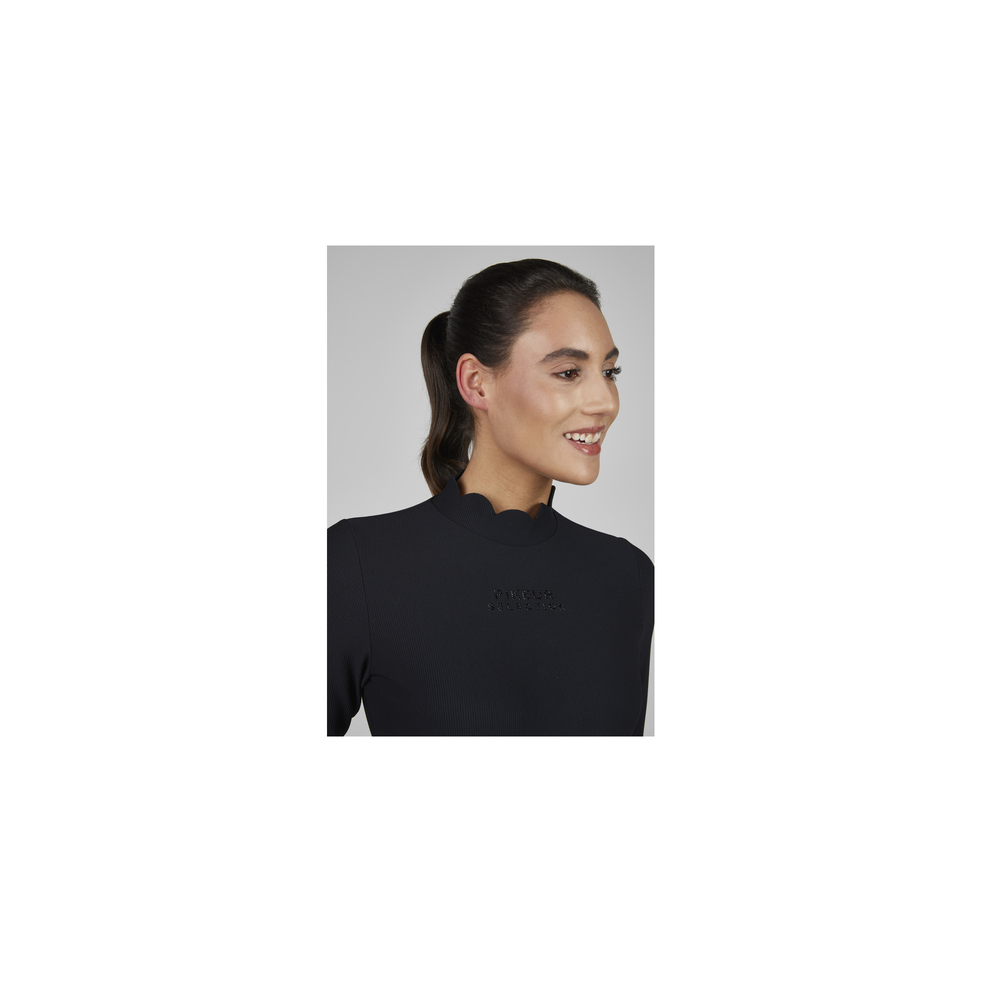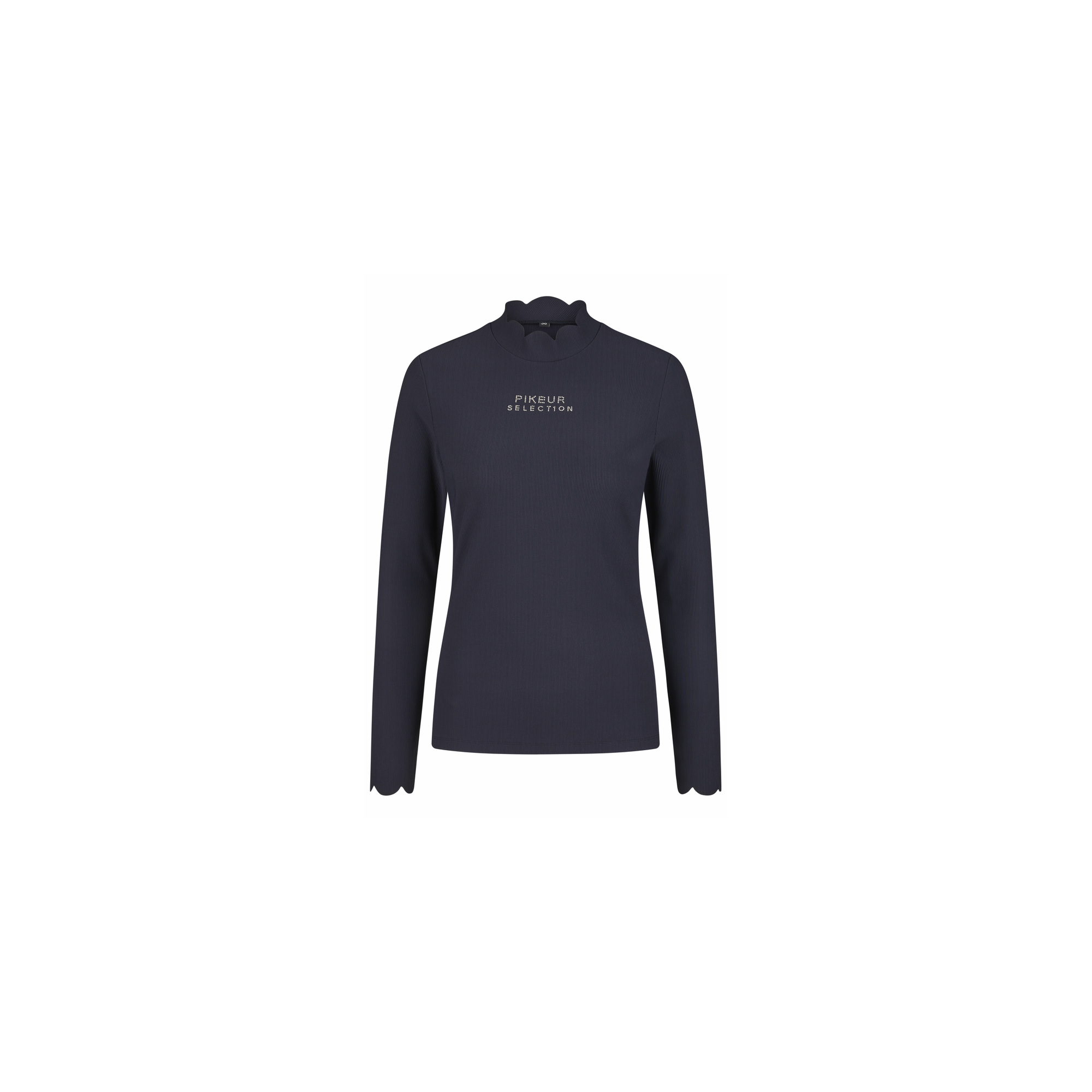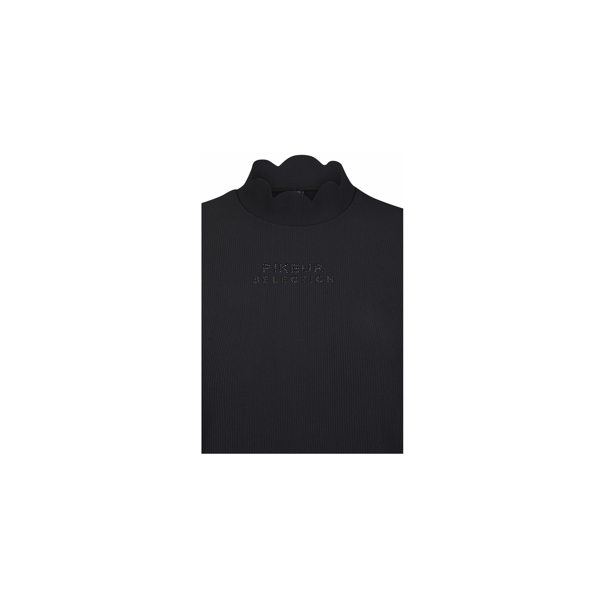 Damska koszulka Pikeur z kolekcji Selection to elegancka i subtelna propozycja dla jeźdźców ceniących styl i wygodę. Wykonana z prążkowanej dzianiny, idealnie dopasowuje się do sylwetki i zapewnia pełną swobodę ruchów. Falowana stójka oraz delikatnie wykończone mankiety nadają jej szykownego, nowoczesnego charakteru, jednocześnie zachowując sportową lekkość.