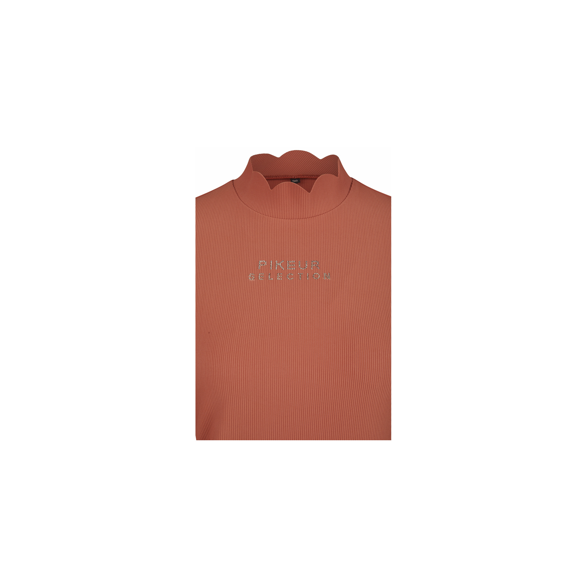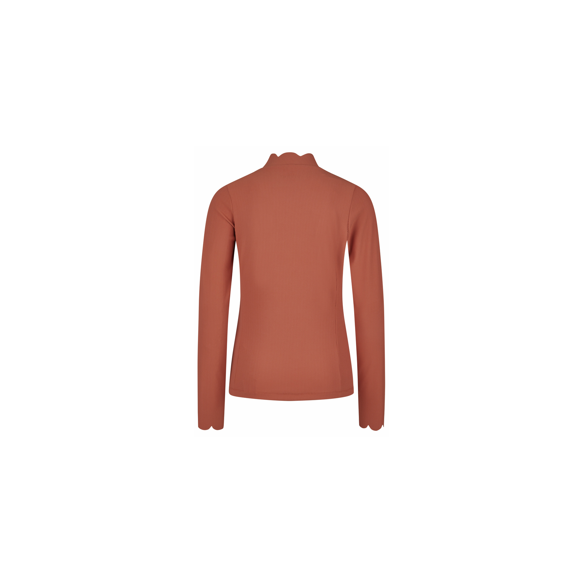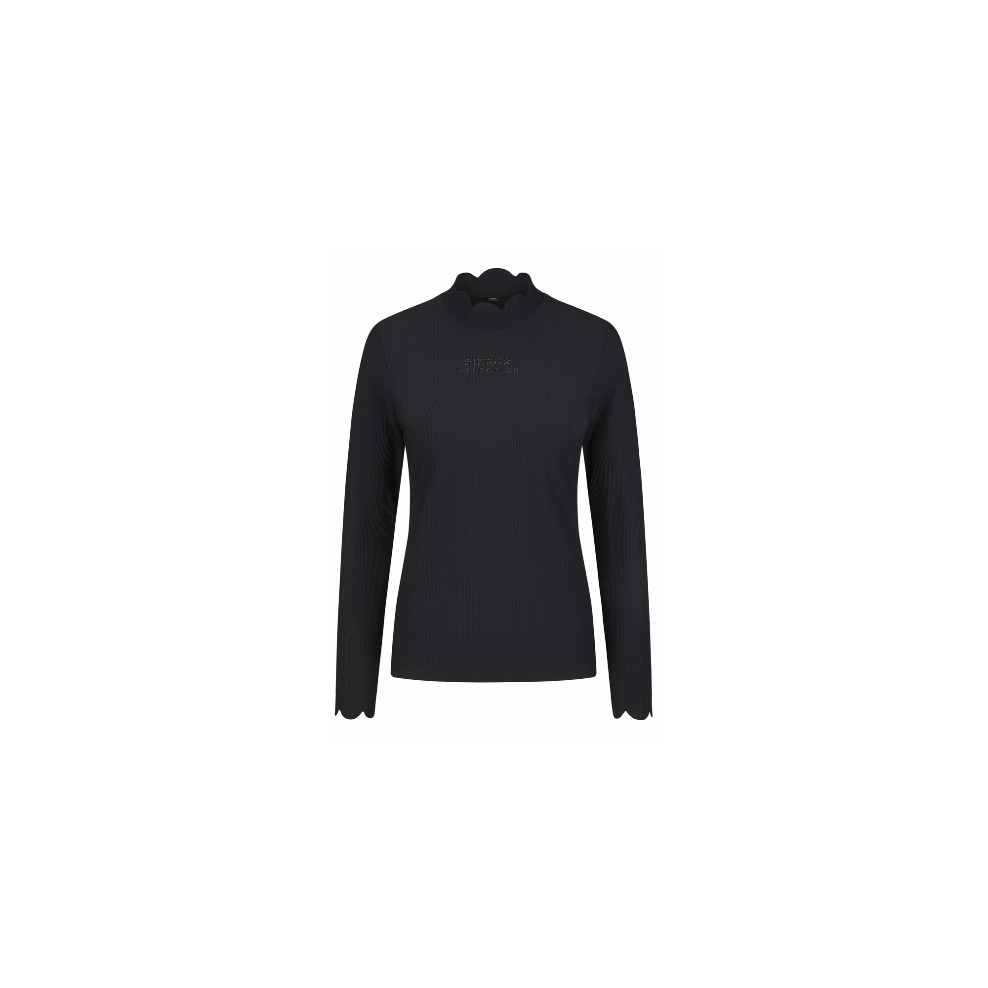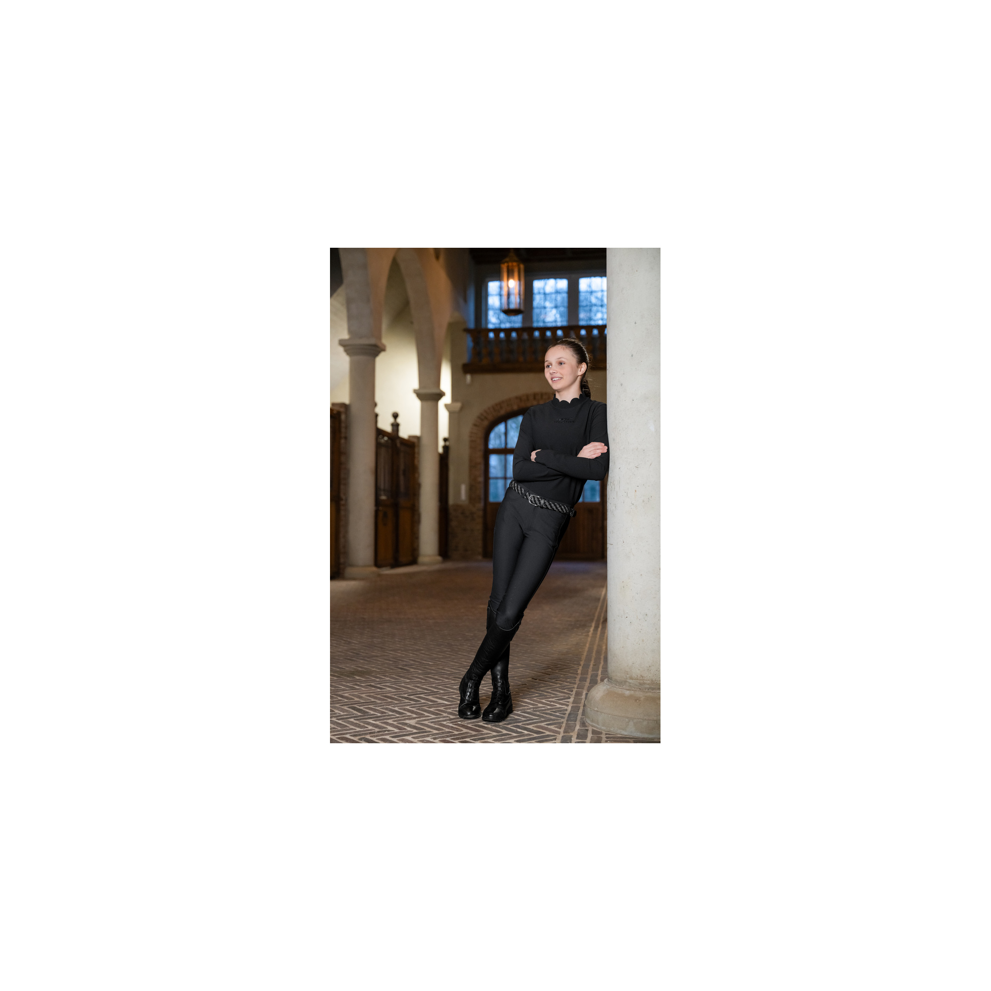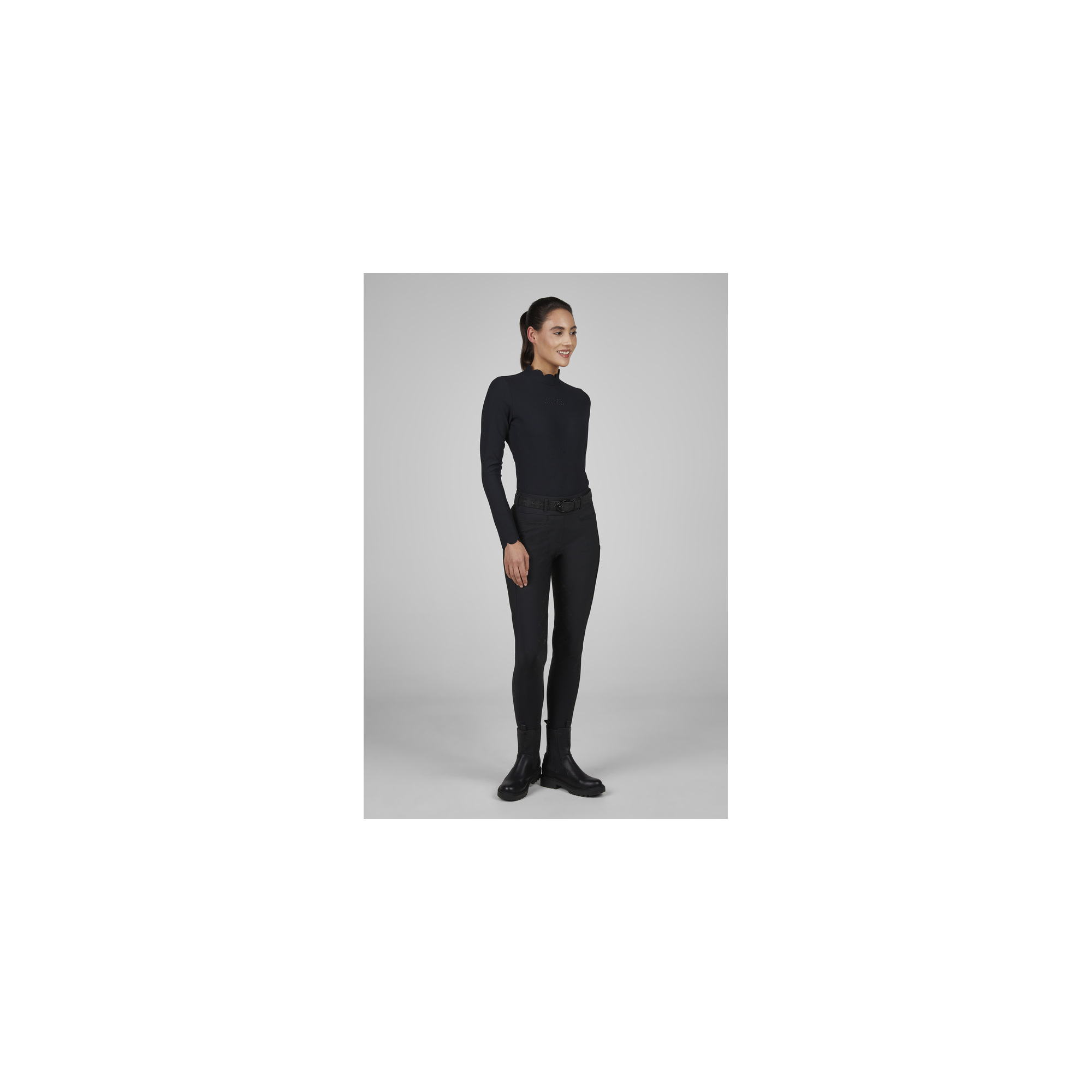 Damska koszulka Pikeur z kolekcji Selection to elegancka i subtelna propozycja dla jeźdźców ceniących styl i wygodę. Wykonana z prążkowanej dzianiny, idealnie dopasowuje się do sylwetki i zapewnia pełną swobodę ruchów. Falowana stójka oraz delikatnie wykończone mankiety nadają jej szykownego, nowoczesnego charakteru, jednocześnie zachowując sportową lekkość.