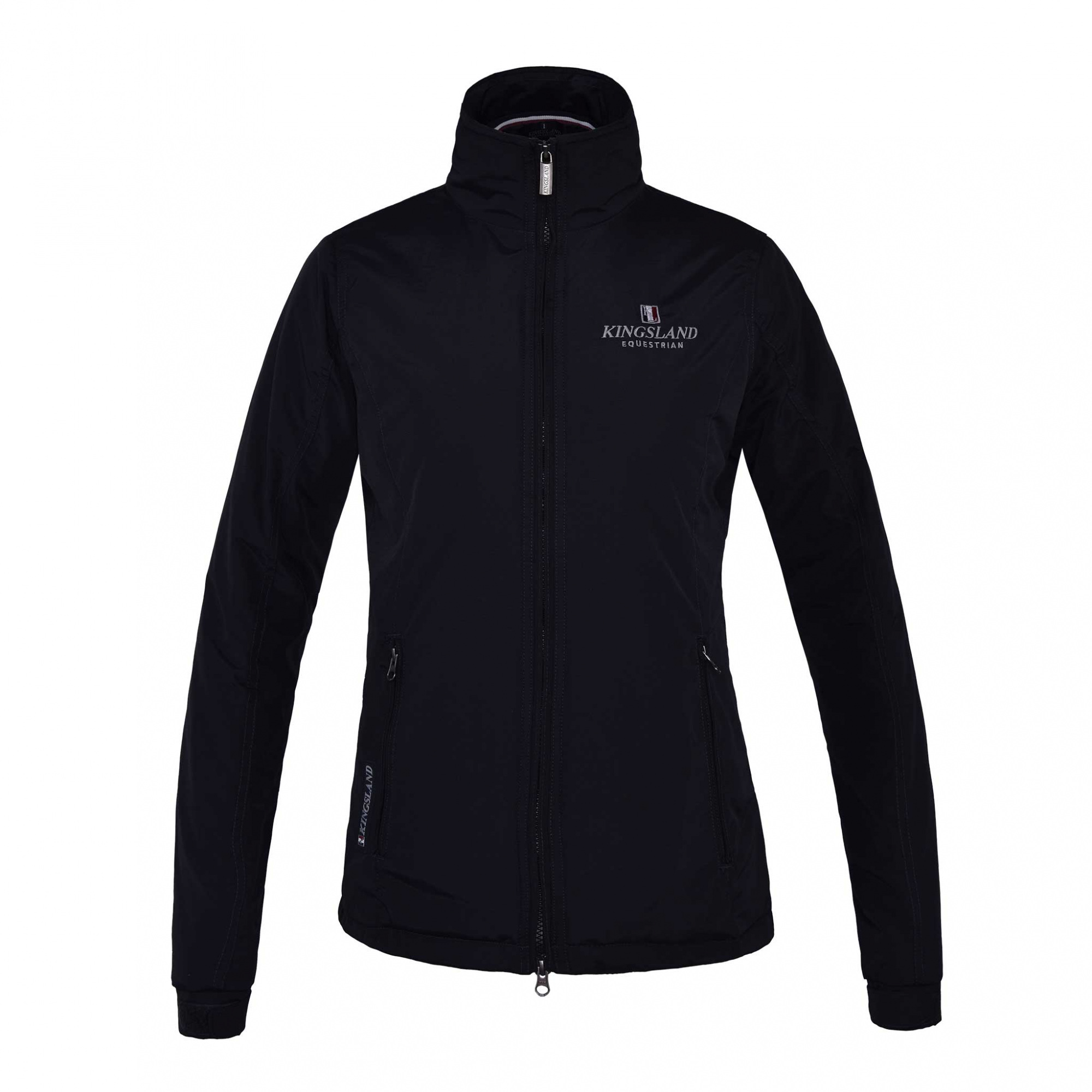 Damska kurtka jeździecka firmy Kingsland. Została wykonana z wysokiej jakości materiału, który doskonale utrzymuje ciepło dzięki wypełnieniu, które posiada. Ponadto kurtka posiada długi rękaw zakończony ściągaczami oraz podwójne zapięcie pod szyję z wysokim kołnierzem. Kurtka została również wyposażona w dwie kieszenie po boku z możliwością zapięcia na zamek. Jest to doskonały wybór do jazdy konnej w chłodne jesienne bądź zimowe dni, zapewnia wysoki poziom komfortu osobistego oraz pełną swobodę ruchów. Dekoracyjnie dodano logo firmy Kingsland umieszczone na piersi oraz z tyłu na kołnierzu.
