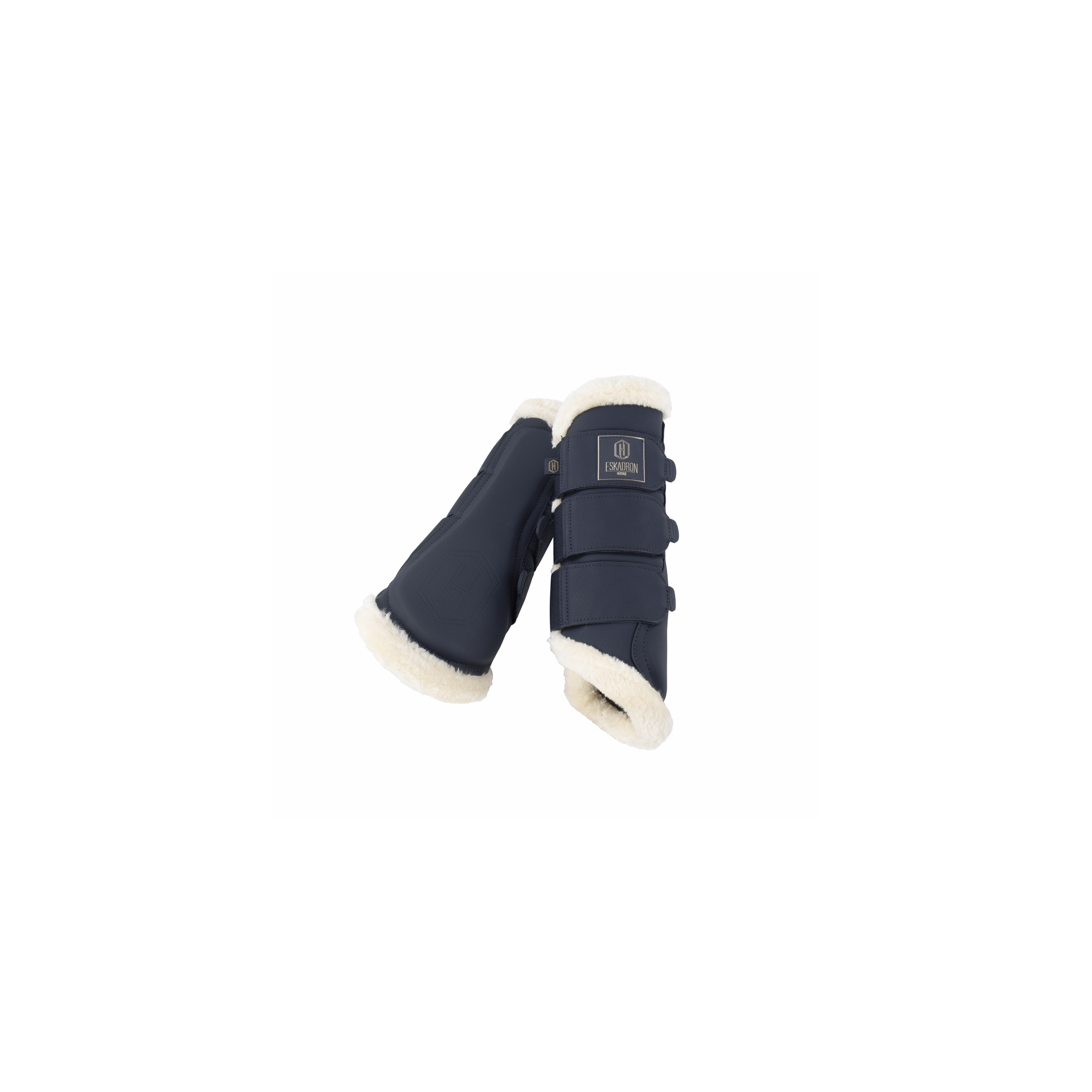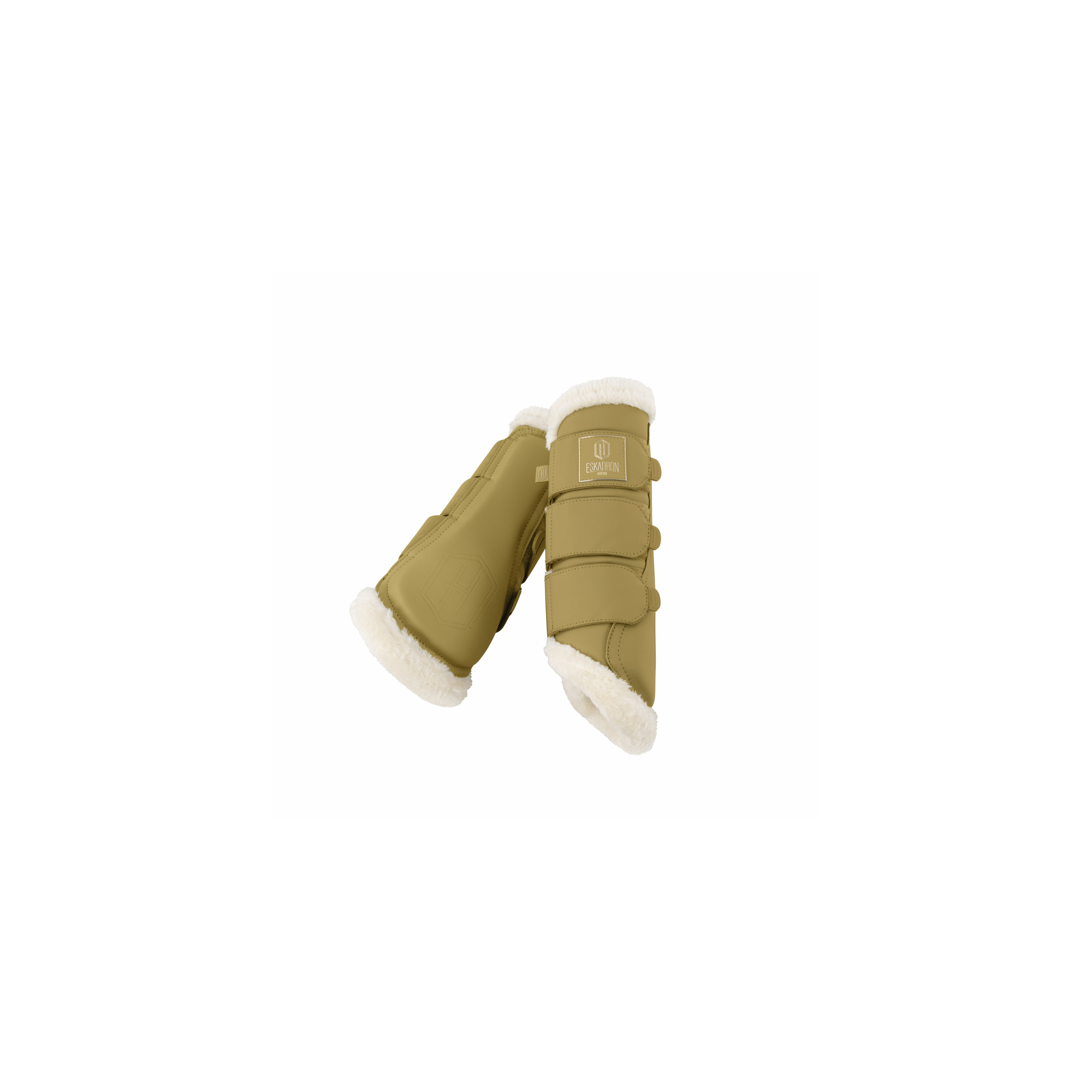 Ochraniacze Eskadron Faux Leather FF Heritage to elegancka ochrona końskich nóg w najlepszym wydaniu. Wykonane z trwałej skóry syntetycznej (faux leather), są odporne na zabrudzenia i łatwe w czyszczeniu, zachowując luksusowy wygląd. Wnętrze wyłożone jest miękkim futerkiem faux fur, które zapobiega otarciom i zapewnia komfort nawet przy dłuższym użytkowaniu. Anatomiczny kształt dopasowuje się do nogi konia, a mocne zapięcia na rzep gwarantują stabilność i bezpieczeństwo. Subtelne logo Heritage i klasyczna kolorystyka dodają całości elegancji. To doskonały wybór dla jeźdźców ceniących estetykę i funkcjonalność.