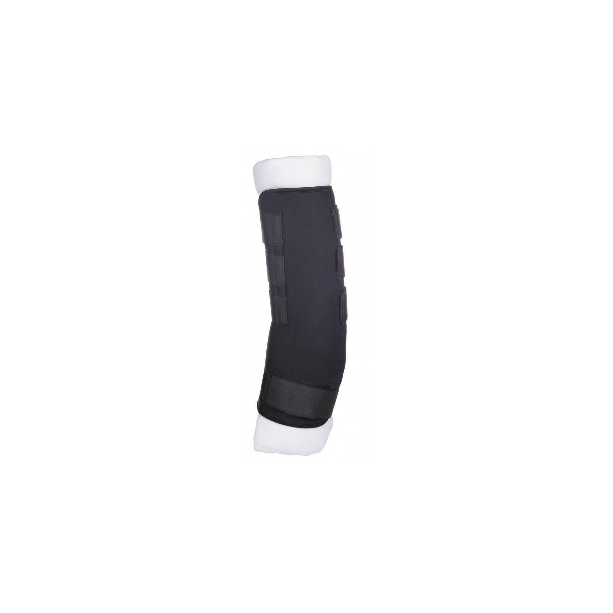 Ochraniacze dla konia firmy HKM. Zostały wykonane z najwyższej jakości elastycznego materiału softoprenowego, który jest miękki i komfortowy dla skóry konia. Ponadto posiadają lekkie wypełnienie ze specjalnej waty, dzięki czemu zapewniają doskonałą ochronę dla nóg konia przed uderzeniami oraz otarciami. Dodatkowo posiadają zapięcie na cztery rzepy, które stabilnie trzymają ochraniacze w miejscu podczas jazdy. Dekoracyjnie na górnym rzepie umieszczono plakietkę z logo firmy HKM.