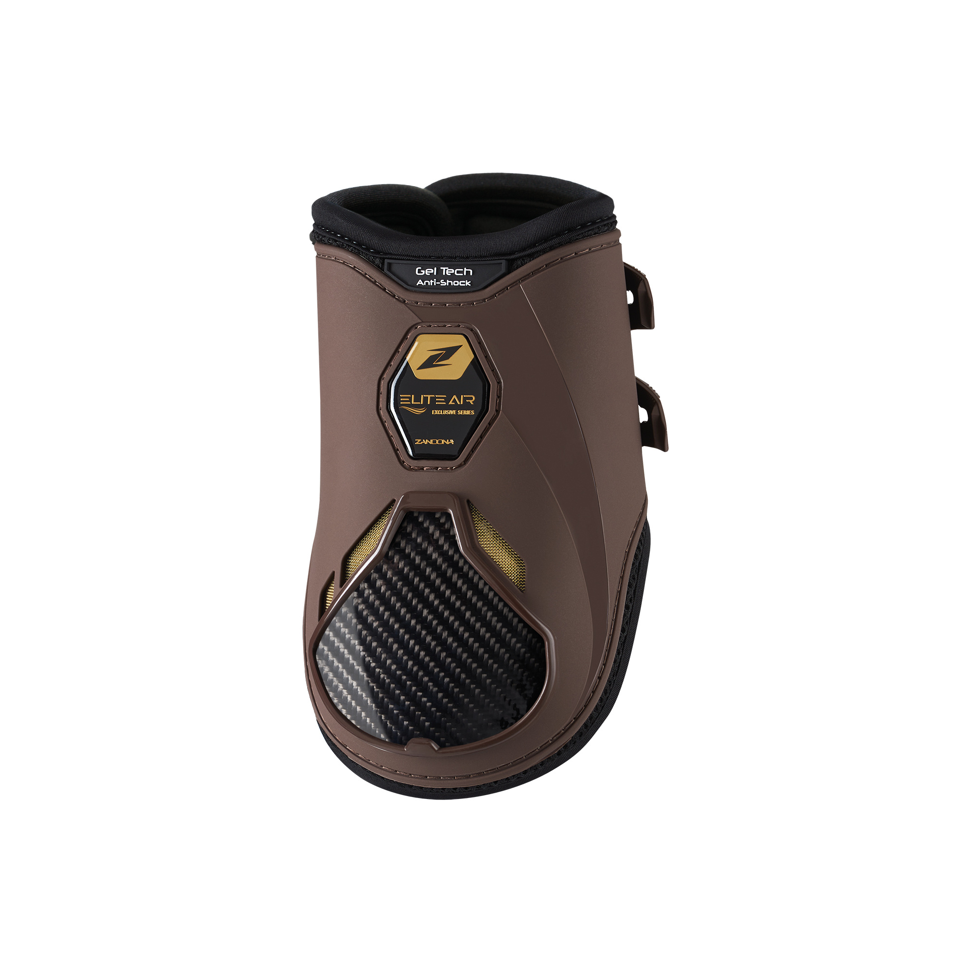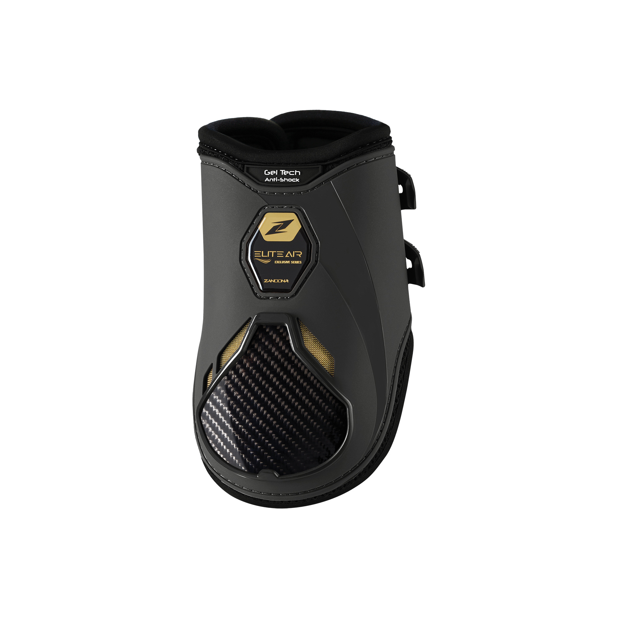 Ochraniacze Zandona Elite Air Fetlock na tylne nogi konia zapewniają wyjątkową ochronę i komfort. Wysoce ochronna struktura z warstwą 3D Air-Mesh oraz perforowanego neoprenu wspomaga wentylację, a wewnętrzna podszewka Coolmax® zapewnia doskonałą oddychalność. Elastyczne wkładki z włókna FLEX-CARBON i wkładka Gel-Tech amortyzują wstrząsy, a elastyczna powłoka i Flex-Zone zapewniają pełną swobodę ruchu. Produkt w 100% wyprodukowano we Włoszech.