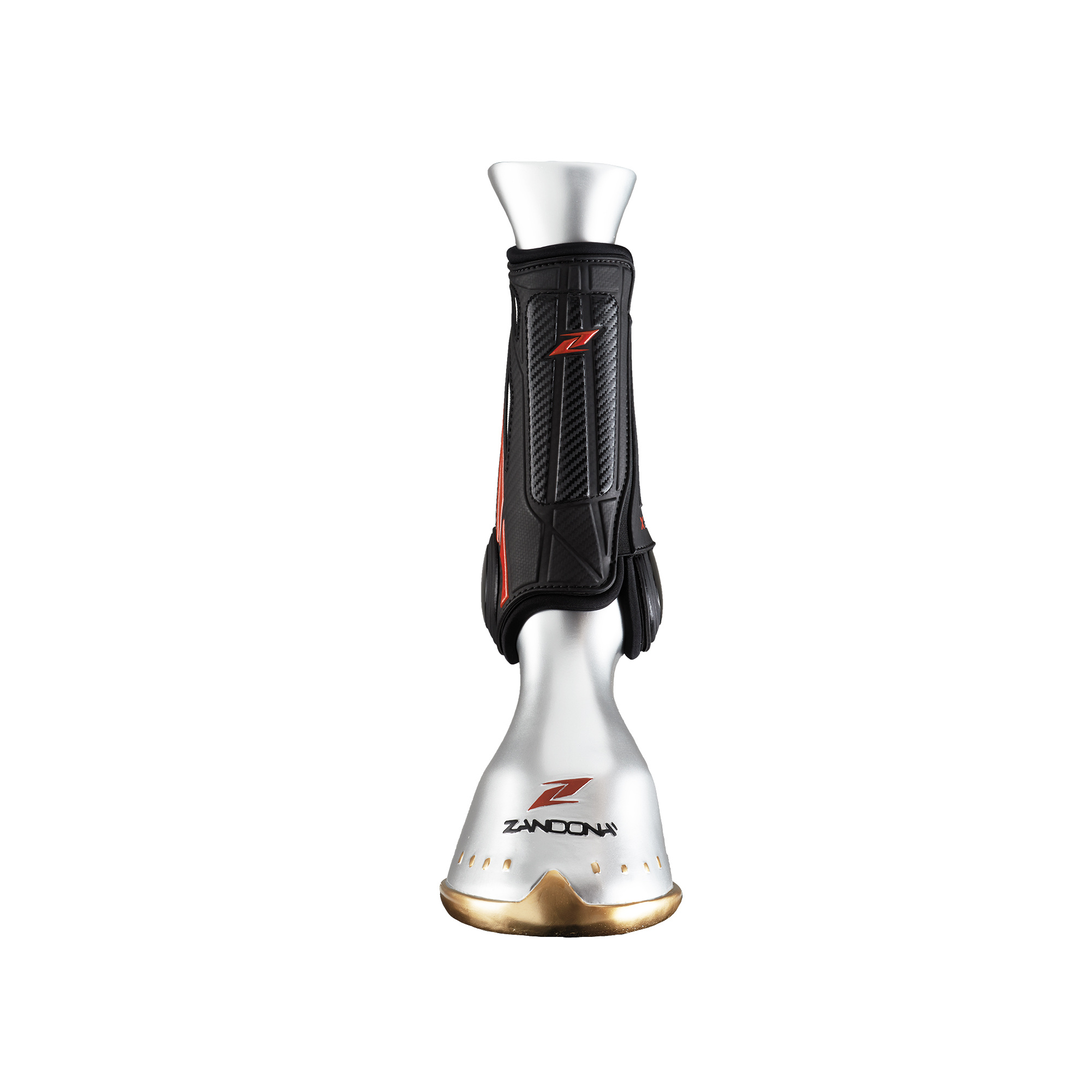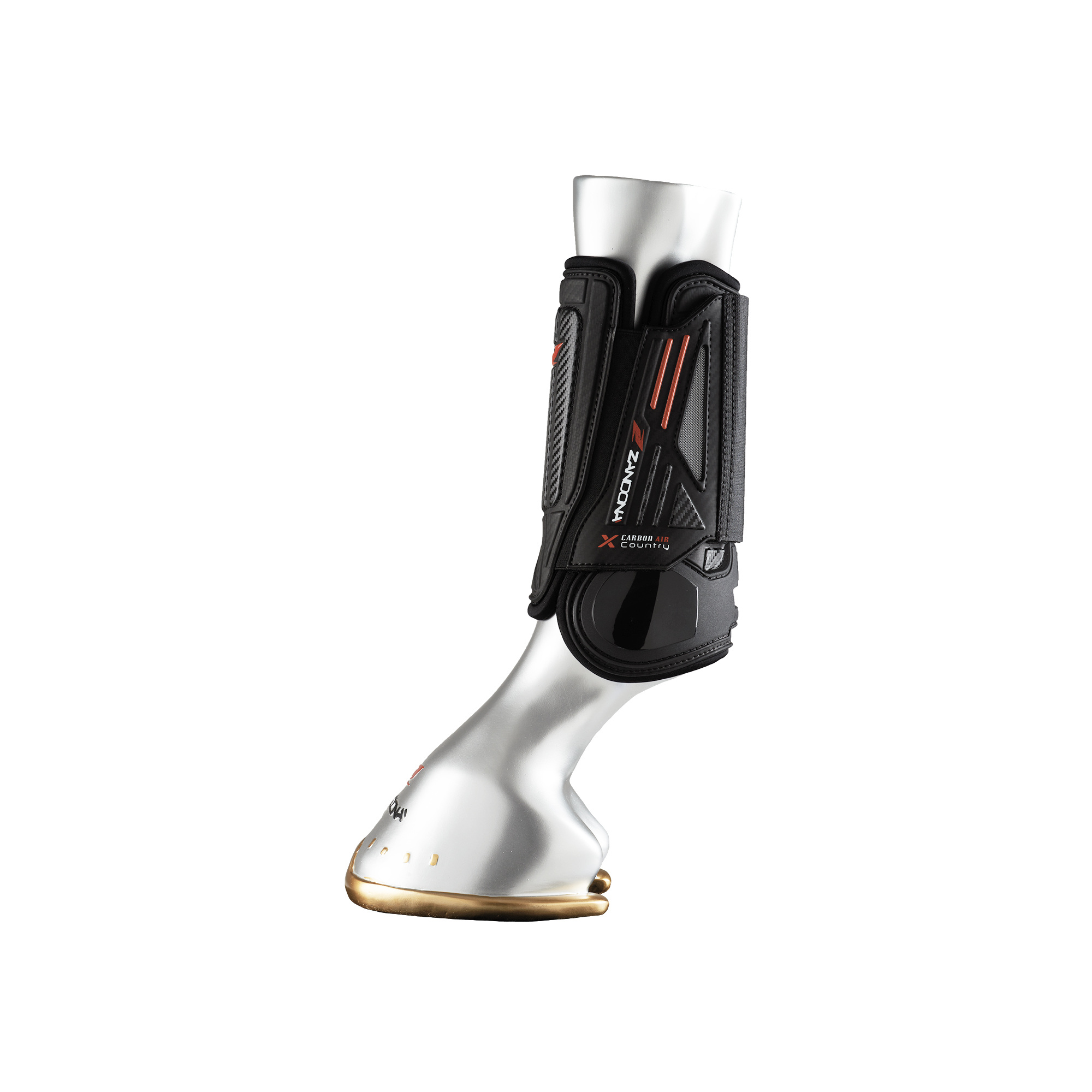 Zandona Carbon Air X-Country to zaawansowane technologicznie ochraniacze, zaprojektowane z myślą o ochronie przednich nóg konia podczas dyscypliny WKKW. Wykonane są z lekkich i wytrzymałych materiałów, nieabsorbujących wody, co zapewnia komfort nawet w trudnych warunkach. Anatomiczny kształt oraz zapięcia na rzep gwarantują stabilność i łatwość użytkowania. Dodatkowe otwory wentylacyjne wspomagają cyrkulację powietrza, chroniąc ścięgna przed przegrzaniem.