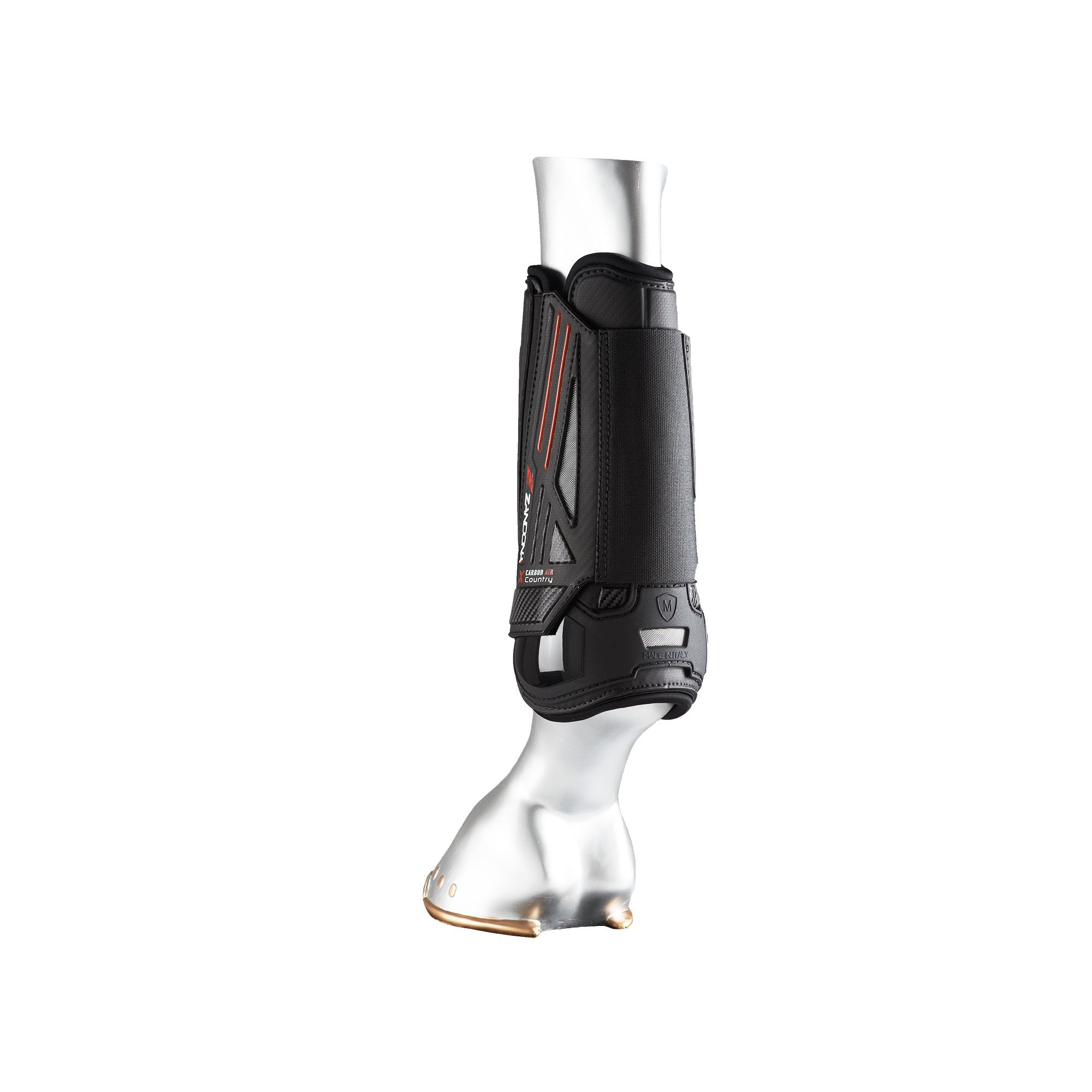 Zandona Carbon Air X-Country to ochraniacze zaprojektowane z myślą o maksymalnej ochronie tylnych nóg konia podczas dyscypliny WKKW. Wykonane są z lekkich, wytrzymałych materiałów, które nie absorbują wody, co zapewnia komfort nawet w trudnych warunkach. Wzmocnienia z włókna węglowego pod skorupą zwiększają odporność na uderzenia i izolują termicznie stawy.