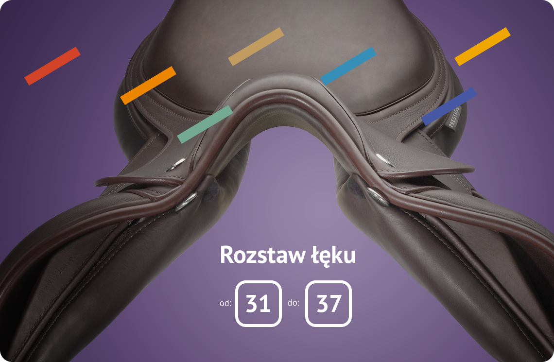 Szeroki łęk z przodu i optymalny punkt ciężkości sprawiają, że siodło doskonale dopasowuje się zarówno do kuców i koni.