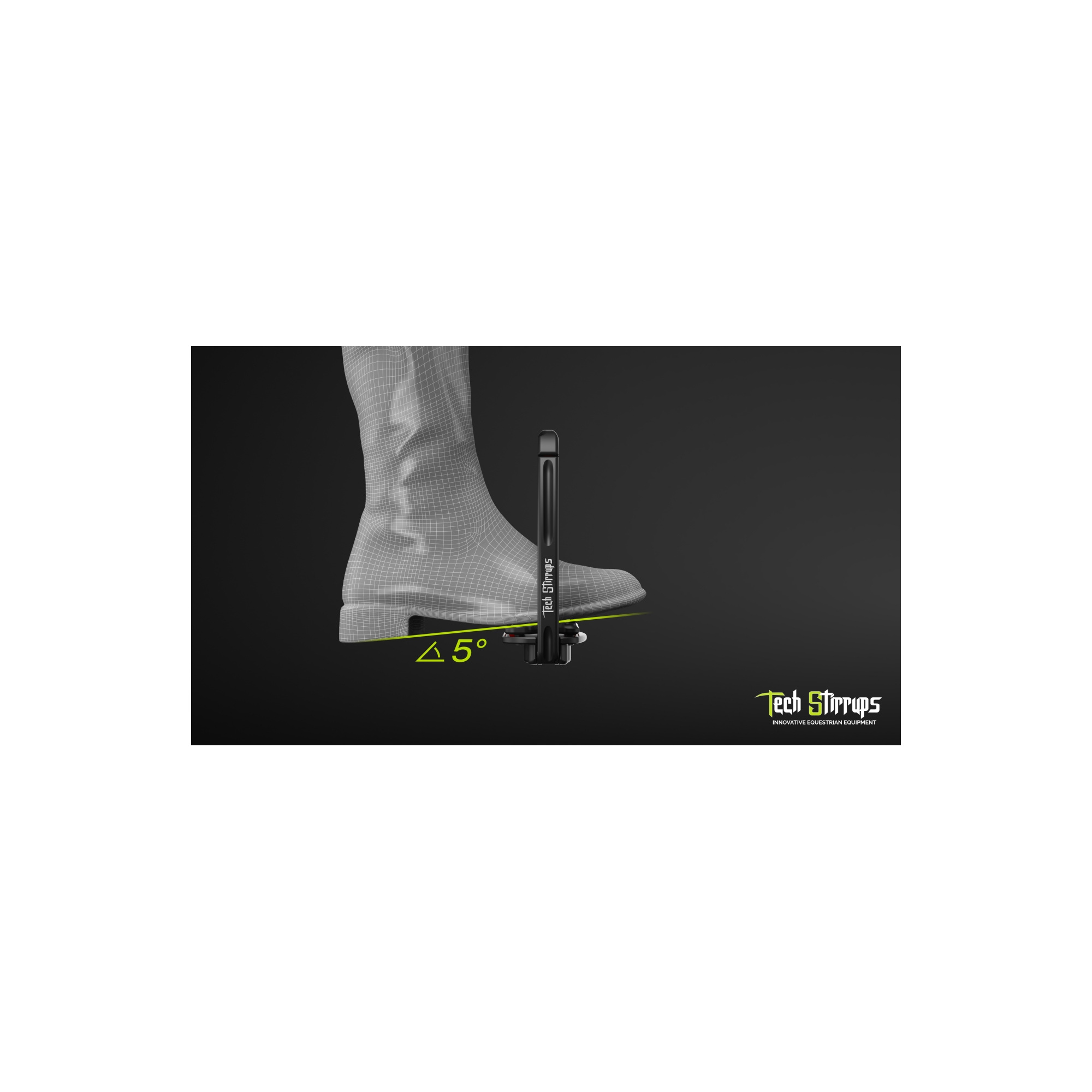 Stopka została pochylona o 5°, co jeszcze skuteczniej wspiera utrzymanie prawidłowej pozycji pięty w dół. Taka konstrukcja sprzyja lepszemu ułożeniu nogi, stabilności oraz precyzyjnemu kontaktowi z koniem.