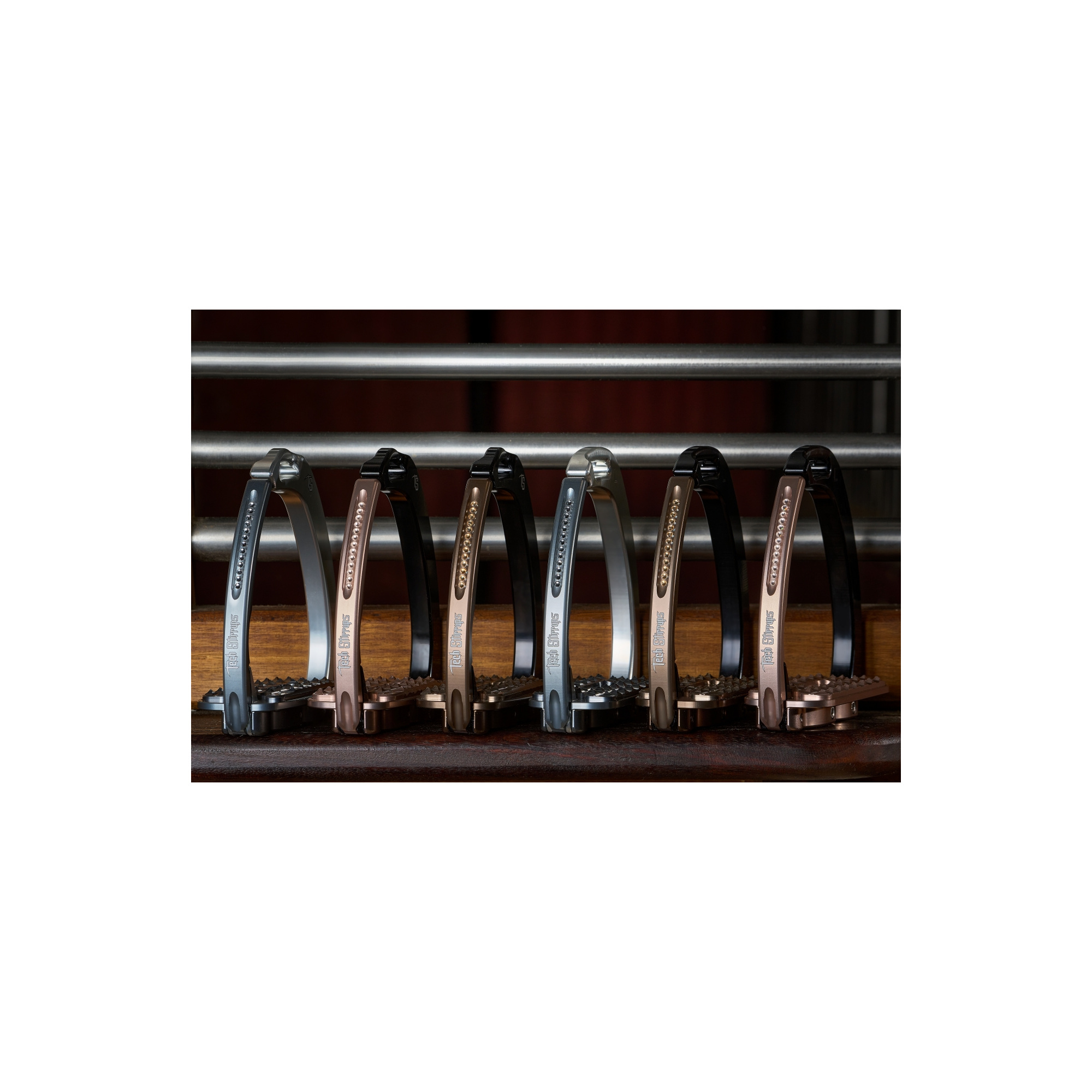 Ekskluzywne kryształki Swarovskiego umieszczone na zewnętrznej stronie ramienia dodają strzemionom luksusowego, kobiecego charakteru – idealne dla jeźdźców, którzy chcą połączyć bezpieczeństwo z estetyką.